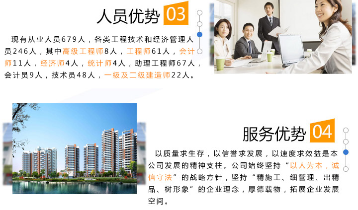 質量求生存,以信譽求發(fā)展,以速度求效益是本公司發(fā)展的精神支柱。公司始終堅持“以人為本,誠信守法”的戰(zhàn)略方針,堅持“精施工、細管理、出精品、樹形象”的企業理念,厚德載物,拓展企業發(fā)展空間。 我們將繼續(xù)堅持“質量第一、用戶第一、信譽第一”的宗旨,以最優(yōu)惠的價格,最優(yōu)質的產品和最完善的服務來滿足廣大用戶的需求。依靠創新和優(yōu)良的品質,出一流產品,創一流效益,與您共創美好燦爛的明天! ...